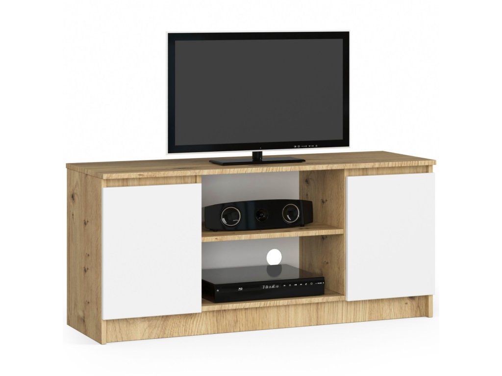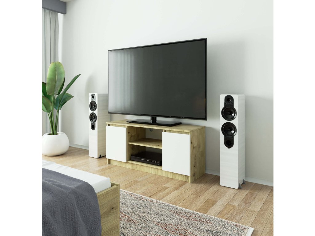 ROMANA120 představuje výjimečný kousek nábytku, který kombinuje teplý odstín dubu Artisan s elegantní bílou. Tento TV stolek se skvěle zapojí do moderního i tradičního interiéru obývacího pokoje a nabízí nejen krásný design, ale také praktičnost.
