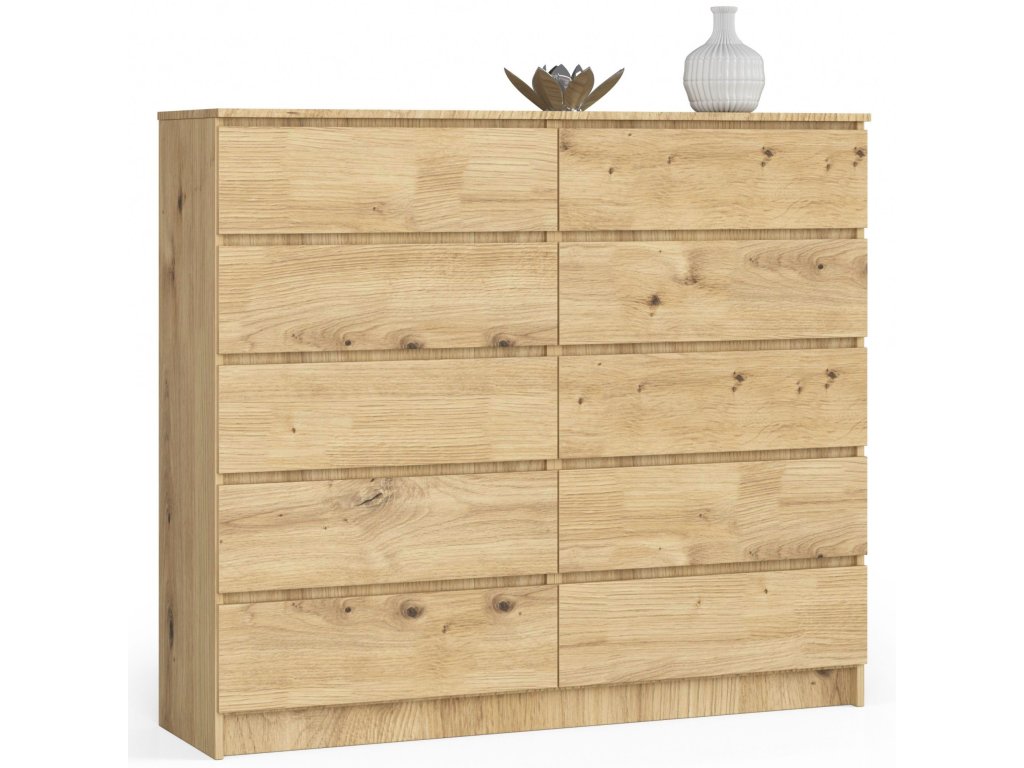 Komoda AGÁTA140 se pyšní jedinečným vzhledem díky krásné barvě dubu Artisan, která dodává nábytku teplý a přirozený charakter. Se šesti zásuvkami a dalším úložným prostorem nabízí ideální kombinaci elegance a praktičnosti. Ať už hledáte dokonalý kus nábytku do ložnice nebo obývacího pokoje, AGÁTA140 bude vždy skvělou volbou.