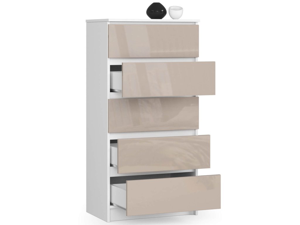 Objevte BERRY60 - komodu, která v sobě snoubí výjimečný design s praktickým využitím. Vysoká konstrukce z kvalitního materiálu MDF je dokončena v kombinaci bílé a capuccino lesklé barvy.