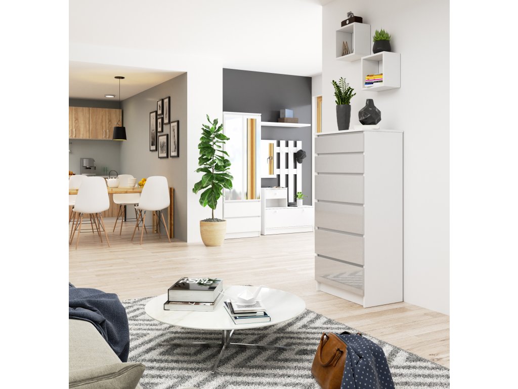 Představujeme HEDDI60 - vrcholný kousek mezi moderními komodami. Určená do ložnice i obývacího pokoje, tato komoda v sobě kombinuje nejen praktičnost, ale i dokonalý design. Svůj charakter získává kontrastním spojením barev bílé a šedé, doplněného lesklým dekorem, který dodává komodě jedinečný vzhled.