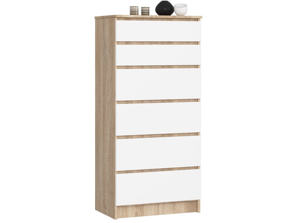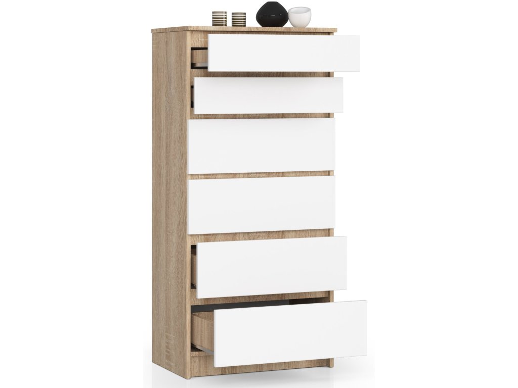 Objevte komodu HEDDI60, která ztělesňuje dokonalou harmonii mezi moderním designem a teplým vzhledem dubu Sonoma. S vhodností pro ložnici i obývací pokoj, tato komoda se stane středobodem každé místnosti díky svému vysokému designu a výjimečné kombinaci barev dub Sonoma a bílé.