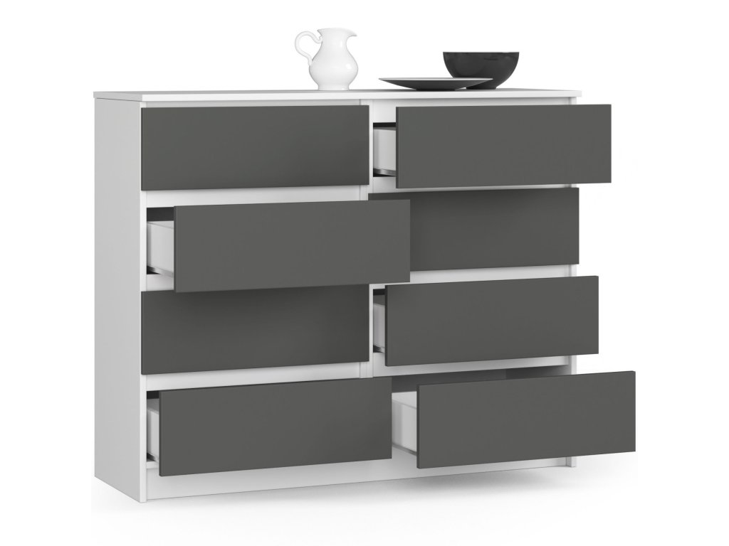 Moderní vysoká komoda, JINDRA120, bílá / grafit