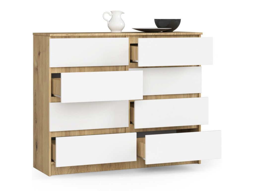 Komoda JINDRA120 je nejenom vizuálně působivá, ale také maximálně funkční. S šesti prostornými zásuvkami a dalšími úložnými možnostmi je ideální pro uchování všech vašich nezbytností. Umístěte ji do své ložnice pro uskladnění oděvu, nebo do obývacího pokoje jako elegantní úložný prvek. Kombinace dubu Artisan s bílým provedením přináší do prostoru svěží, avšak teplý vzhled.