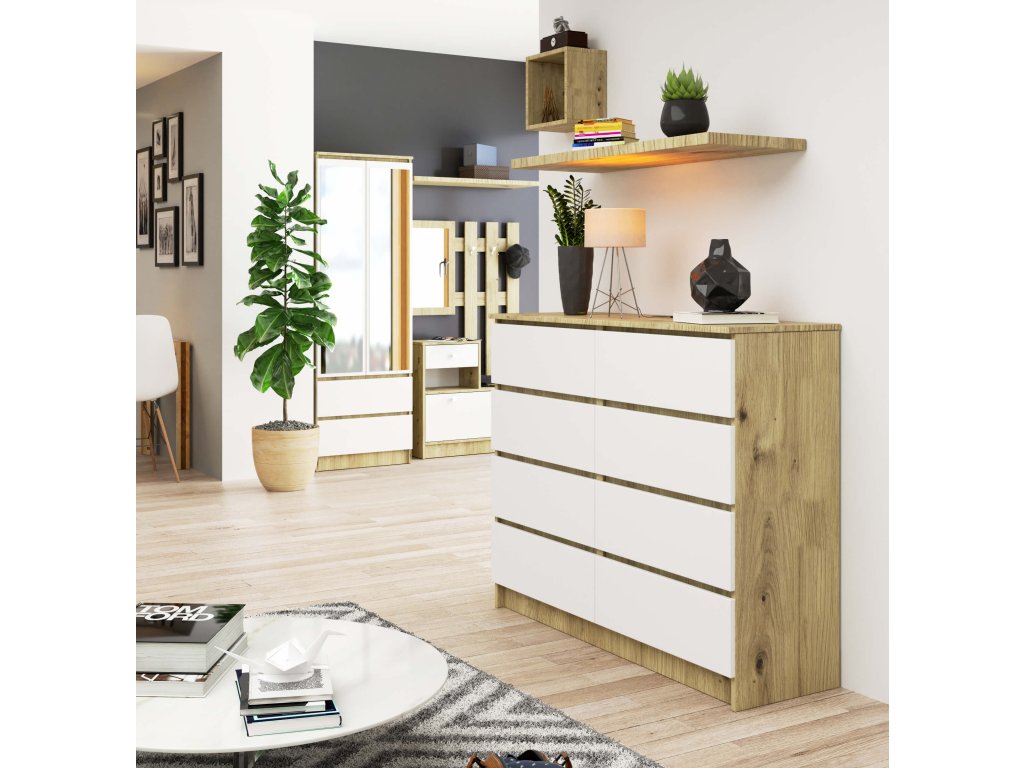 Moderní vysoká komoda, JINDRA120, dub Artisan / bílá