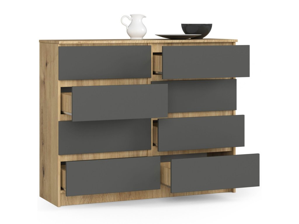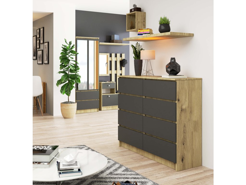 Představujeme vám JINDRA120/strong> - komodu, která představuje dokonalou symbiózu dubu Artisan a hlubokého grafitu. Tento skvost moderního designu je ideální pro ty, kteří hledají kombinaci funkce a stylu v jednom.