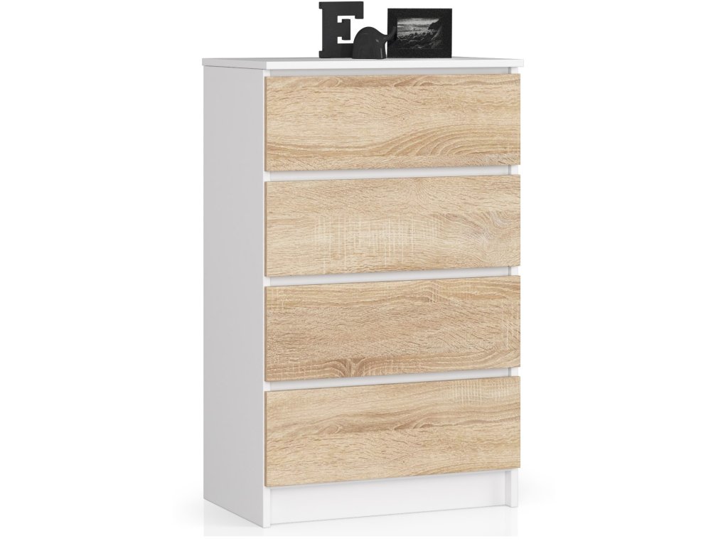 Moderní, vysoká komoda KRISS60, bílá / dub Sonoma