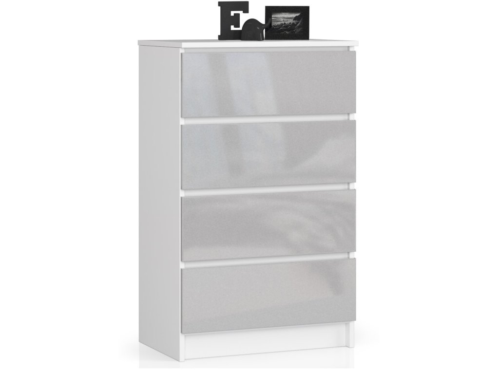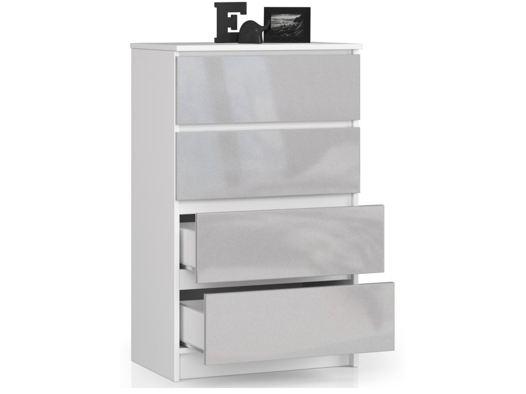 Moderní, vysoká komoda KRISS60, bílá / metalický lesk