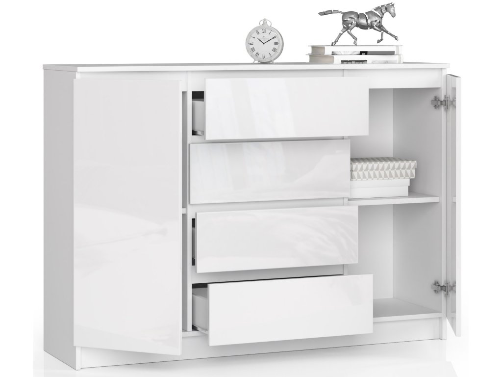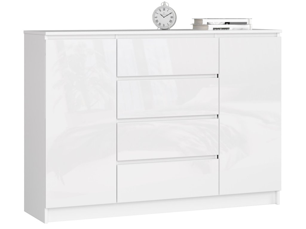 Moderní komoda LEA140 s lesklým povrchem v bílé barvě