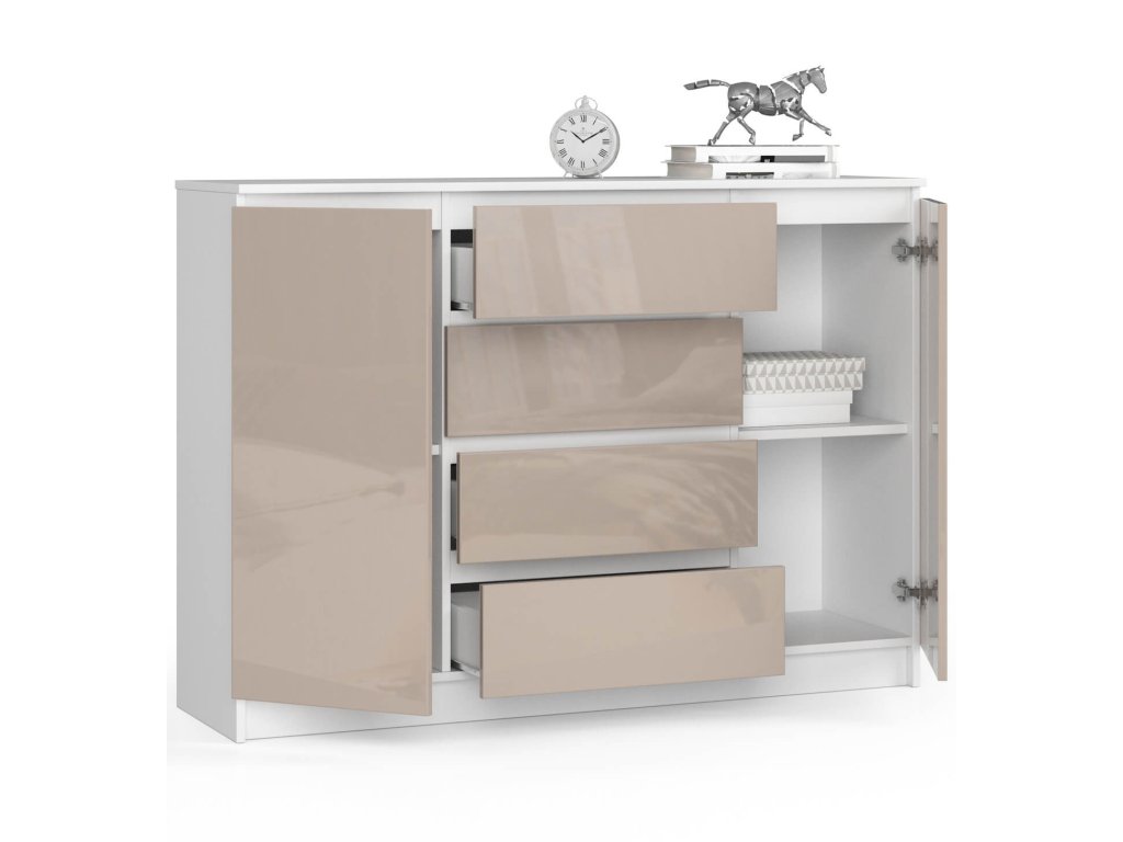 LEA140: Lesklá Komoda s kombinací bílé a capuccino