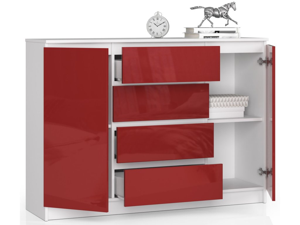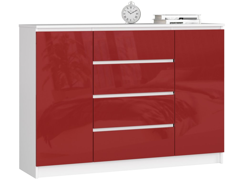 Moderní komoda LEA140 s kombinací bílé a červeného lesku