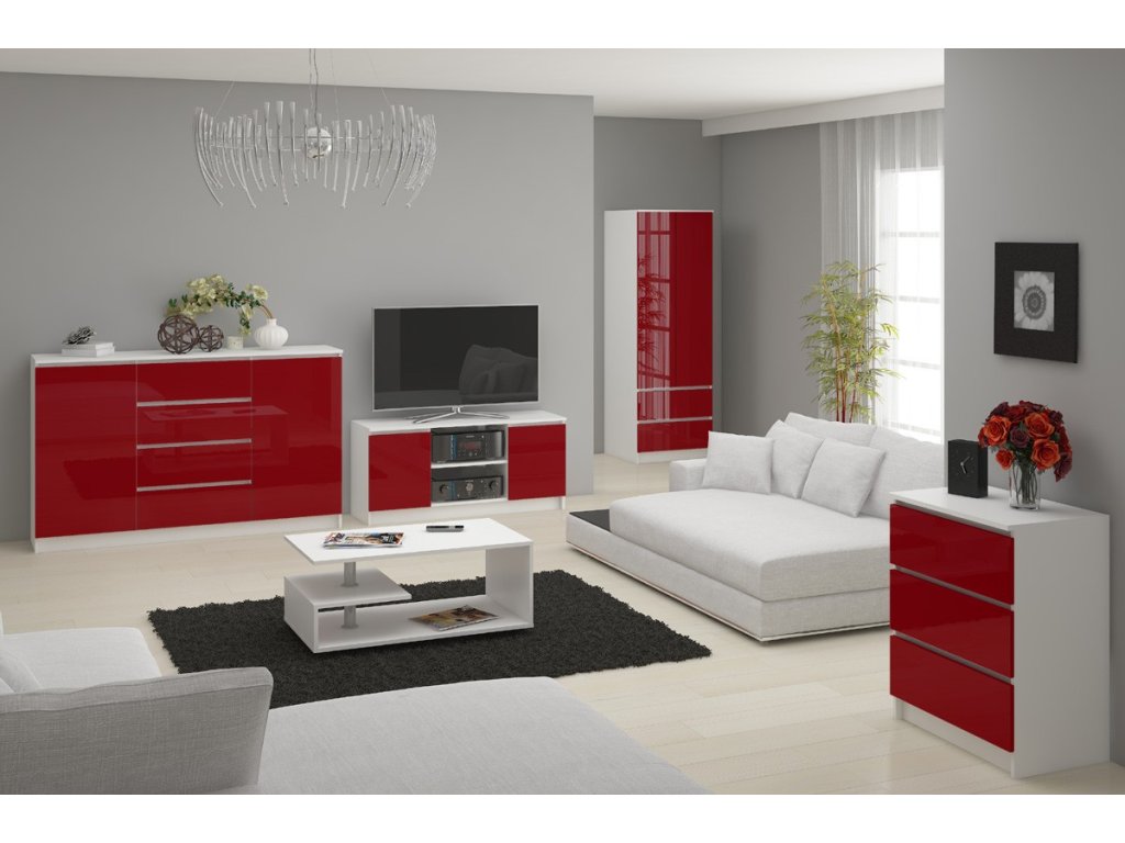 Komoda LEA140 je ideální pro ty, kteří hledají spojení moderního designu a funkčnosti. Její kombinace bílé barvy s červeným leskem dodá vašemu obývacímu pokoji či ložnici výrazný a svěží vzhled.