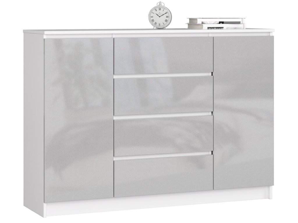 Moderní vysoká komoda, LEA140, bílá / metalický lesk