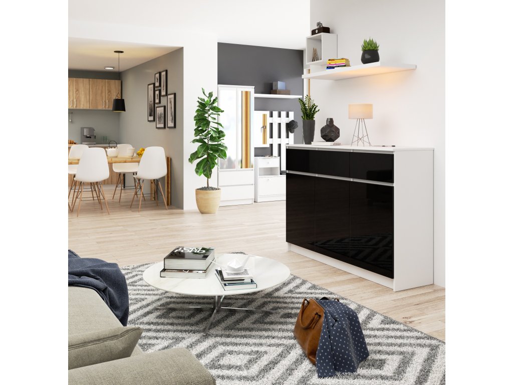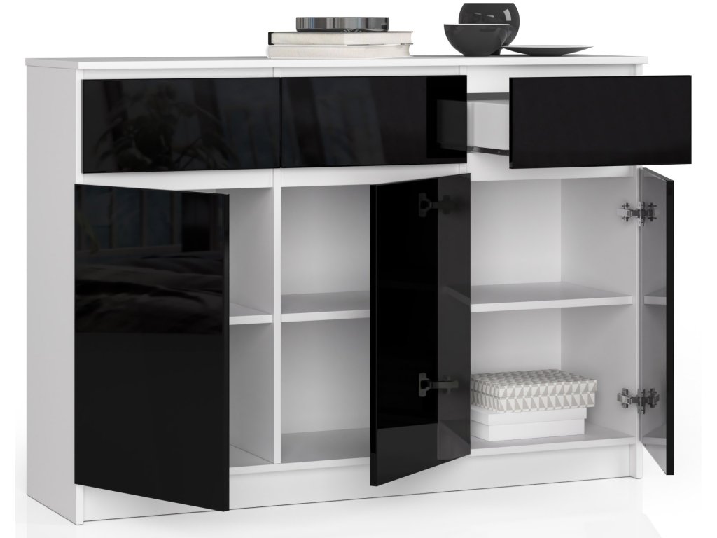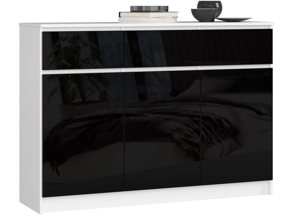 Moderní komoda LIANA140 v kombinaci bílé a černého lesku
