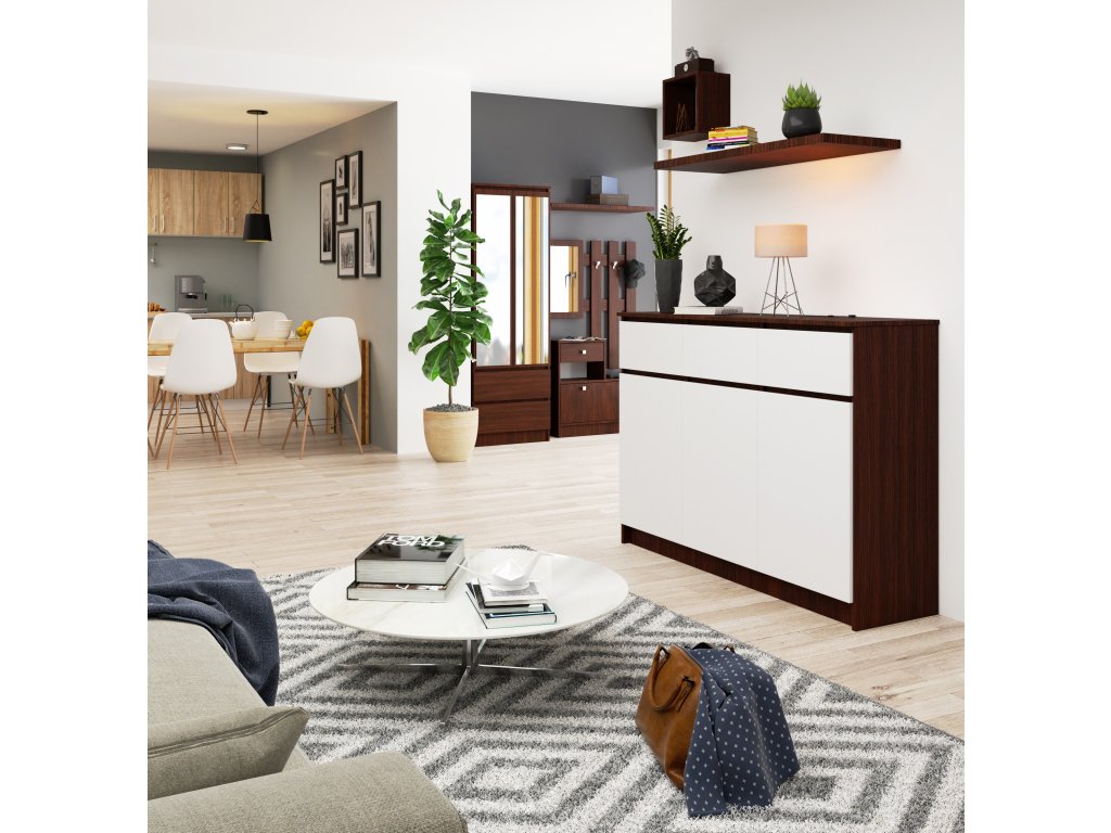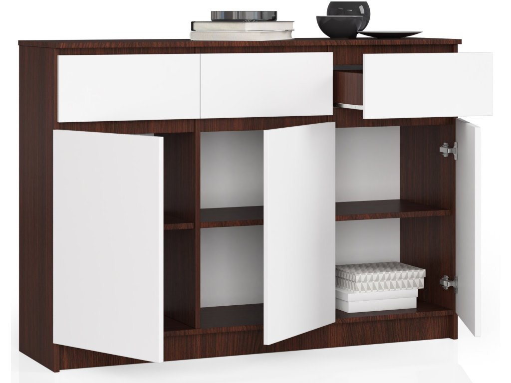 Hledáte ideální nábytek, který by splnil vaše požadavky na skladování a zároveň by dokonale zapadl do moderního interiéru? Nechte se okouzlit komodou LIANA140. Její kombinace hlubokého wenge a čisté bílé barvy přinese do vašeho bytu svěží větrýk.