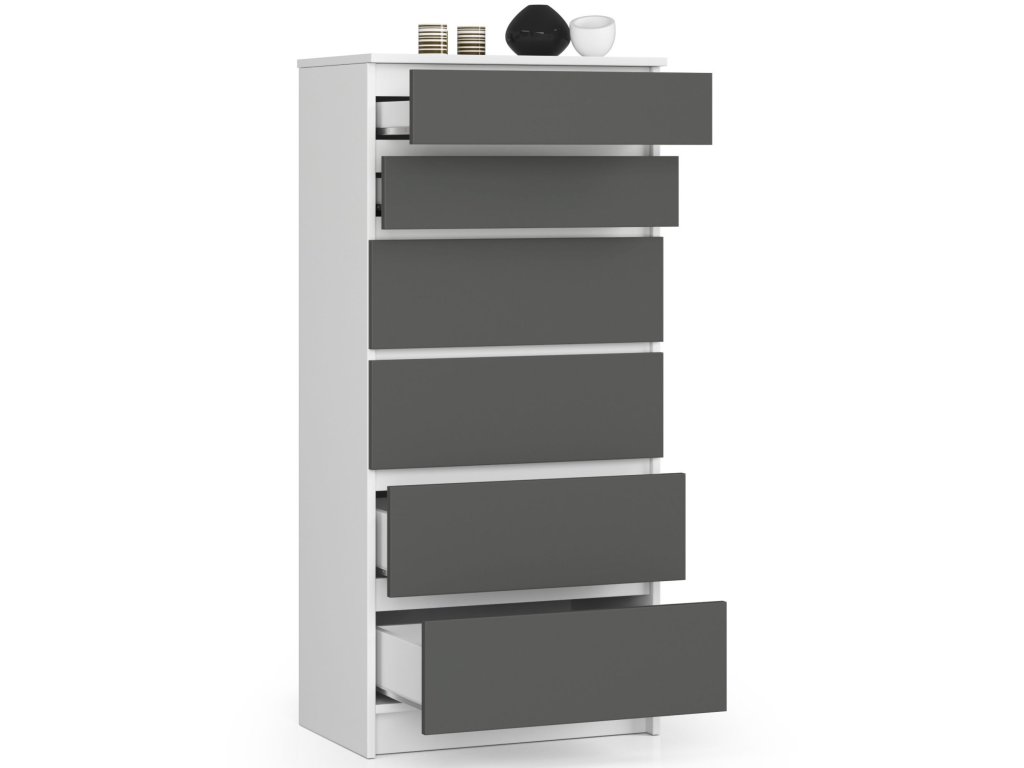Komoda MARIANNA60: Dokonalá symbióza bílé a grafitové