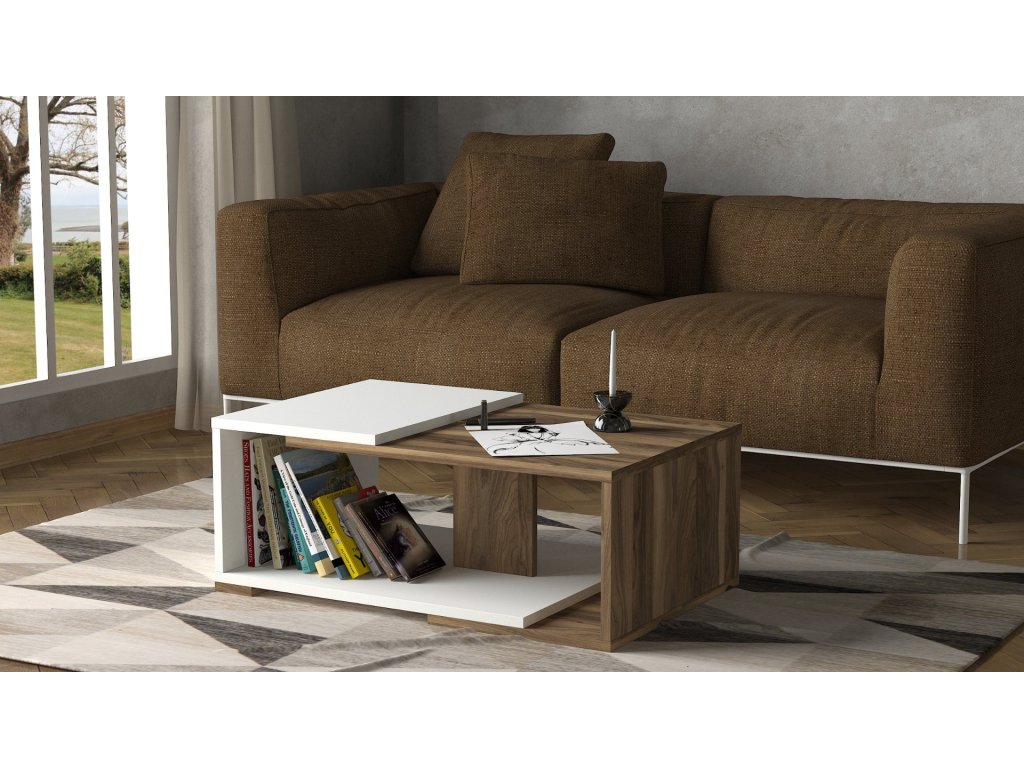 Konferenční stolek MODERNO vás zaujme svým provedením v kombinaci barev bílá + dřevodekor, které přitáhne pozornost každého návštěvníka. Díky otevřené polici poskytuje dostatek úložného prostoru pro odložení knih, časopisů a ostatních drobností, které chcete mít vždy po ruce.