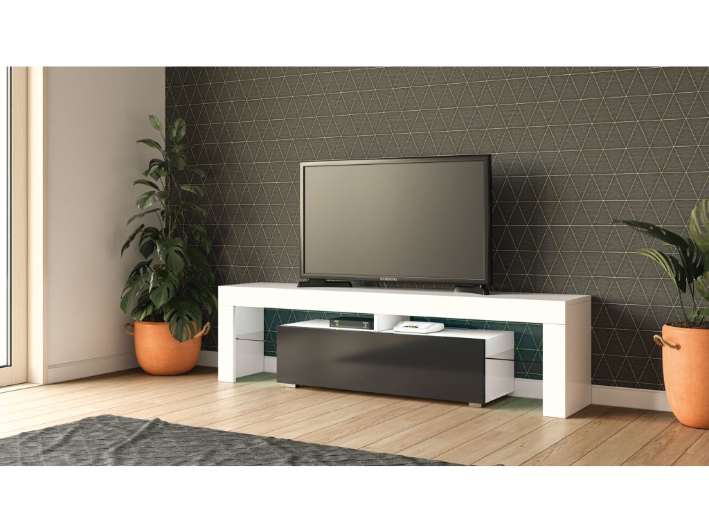 MONTE televizní stolek, bílý lesk / černý lesk