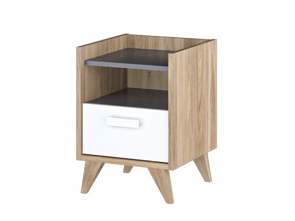 MOOD MO-10 noční stolek barva dub castello/šedá/bílá