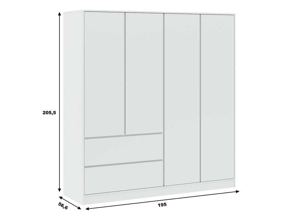 Šatní skříň je vyrobena z kvalitních LTD desek. Jsou nenáročné na údržbu. Skříň je čtyřdveřová. Má dvě praktické zásuvky.