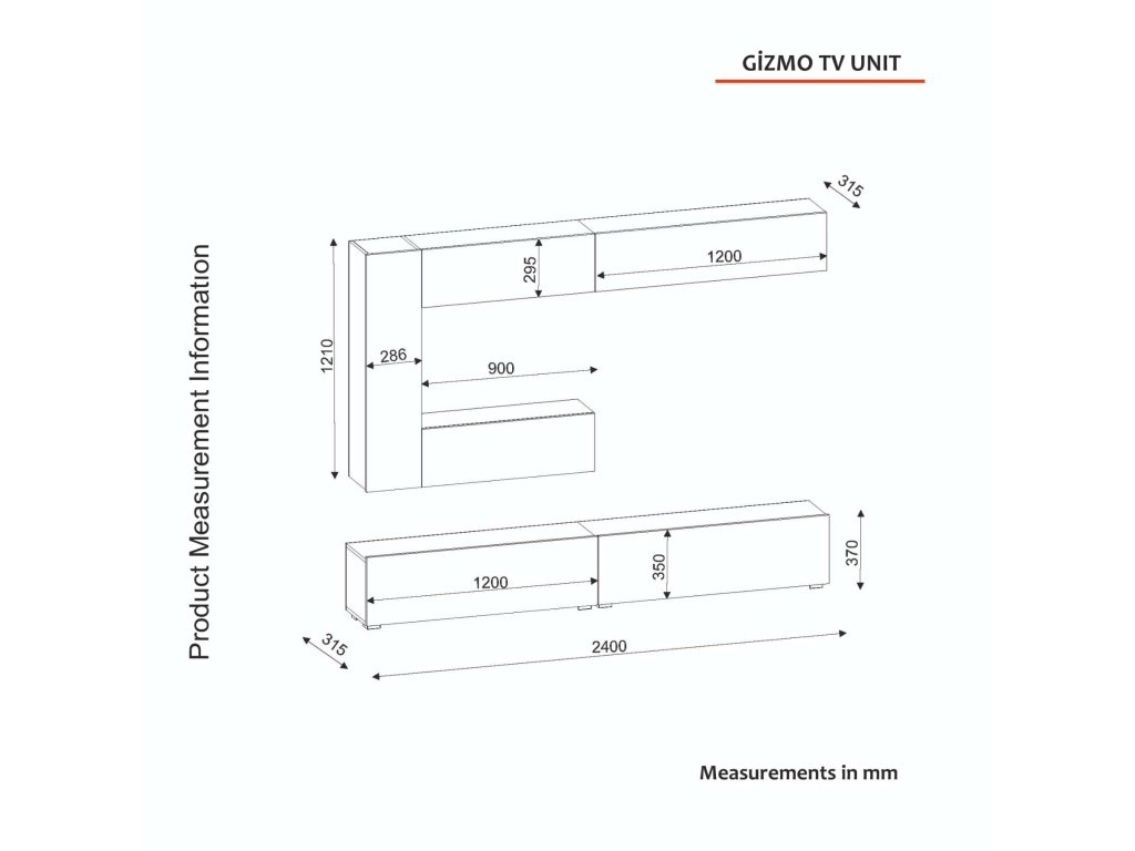 - Horní modul: 240 x 31.5 x 121 cm