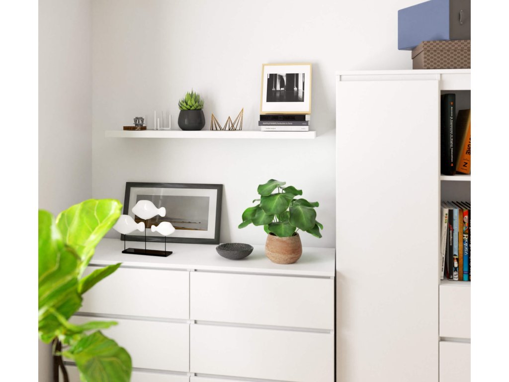 Oživte svůj obývací pokoj s elegantní nástěnnou polici MARKÉTA100. Svěží bílá barva dodá vašemu interiéru vzdušnost a světlost.