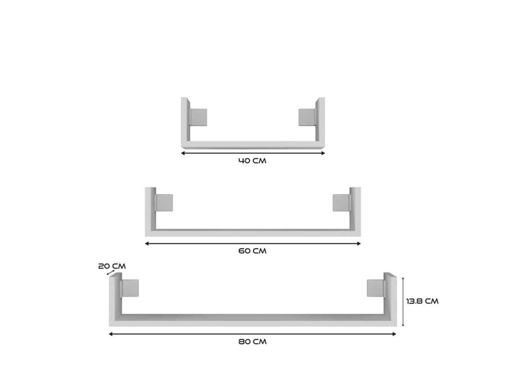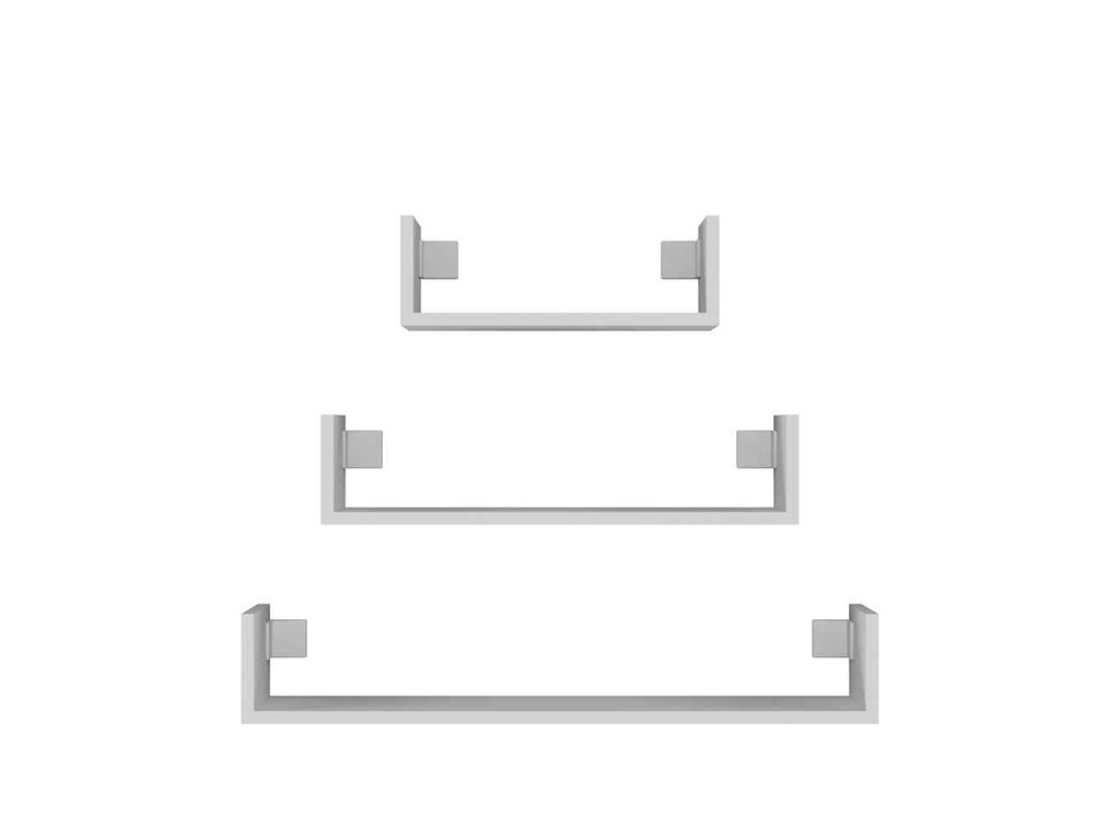 Objevte MOBI 3P, sadu tří moderních nástěnných polic, které přinášejí do vašeho obývacího pokoje čistotu a eleganci bílé barvy. Tyto minimalistické police jsou ideálním řešením pro vystavení vašich oblíbených knih, dekorací nebo rodinných fotografií.