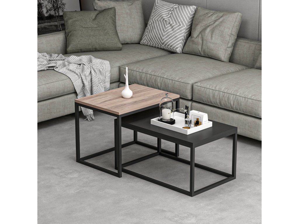 Set konferenčních stolků NATE přináší dokonalou kombinaci elegance a funkčnosti. Sada obsahuje dva obdélníkové stolky různých velikostí, které se skvěle doplňují. Díky moderní barevné kombinaci ořech a černá s kovovými nohami se tyto stolky stanou stylovým doplňkem každého obývacího pokoje.