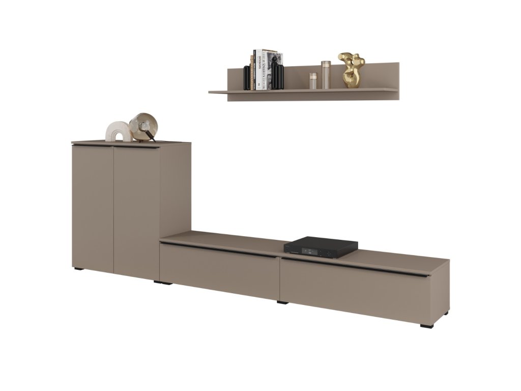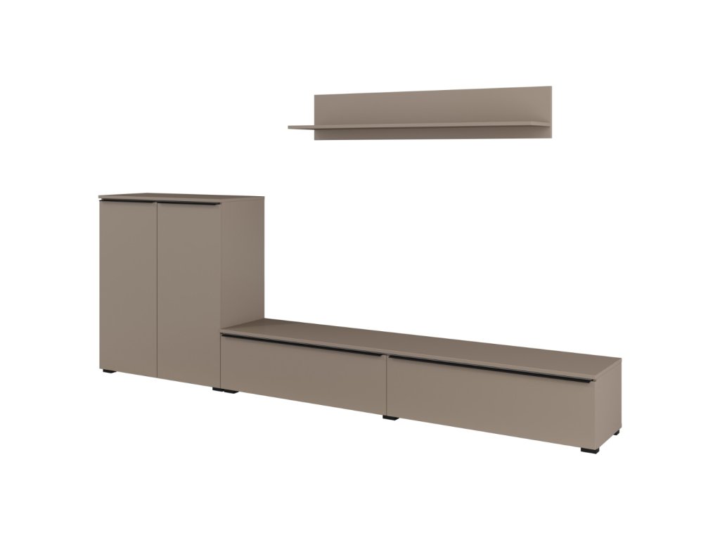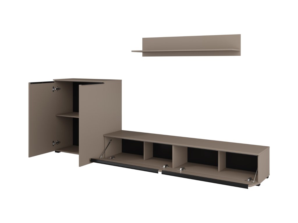 | Sestava obsahuje: | dvoudveřová skříňka 80x35x91cm, nástěnná police 120x23,5x22cm, TV stolek 180x35x30cm |