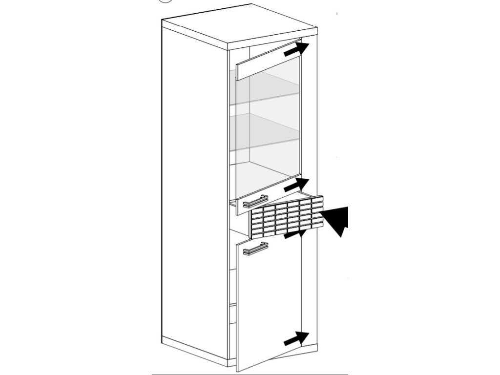 Vitrína má 2 dveře a 1 zásuvku. Jedná se o stylovou kolekci nábytku moderního stylu, který je vhodný do obývacího pokoje a ložnice. Barevné provedení dub ribbeck. Vsazením ozdobné kostičkované lišty je zvýrazněn rustikální vzhled masivního dřeva. Nábytek je vyroben z kvalitního lamina 16 mm, některé desky jsou zesíleny na 48 mm, vše ohraničené ABS páskou. Dvířka mají systém tichého zavírání. Zásuvka je opatřena systémem PUSH TO OPEN ( zatlač a otevři ). Možnost dokoupit LED osvětlení. Dodáváme v demontovaném stavu.Buďte první, kdo napíše příspěvek k této položce.