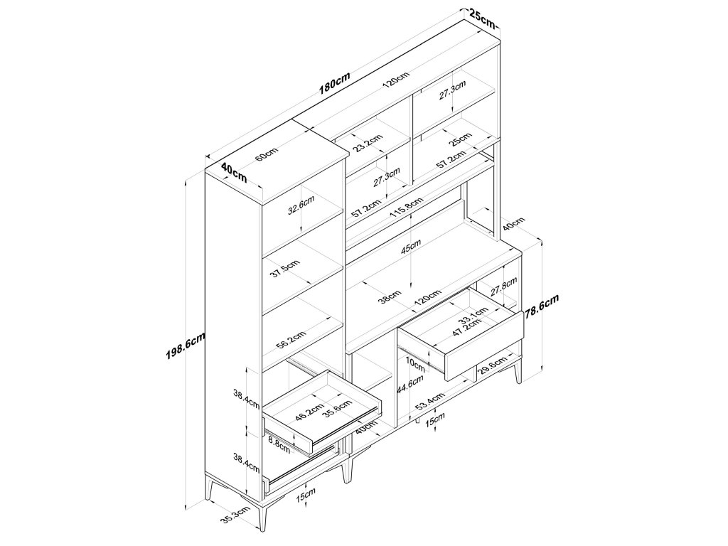 - Rozměry: 198,6 x 180 x 40 cm – prostorná skříň, která pojme i větší množství věcí.