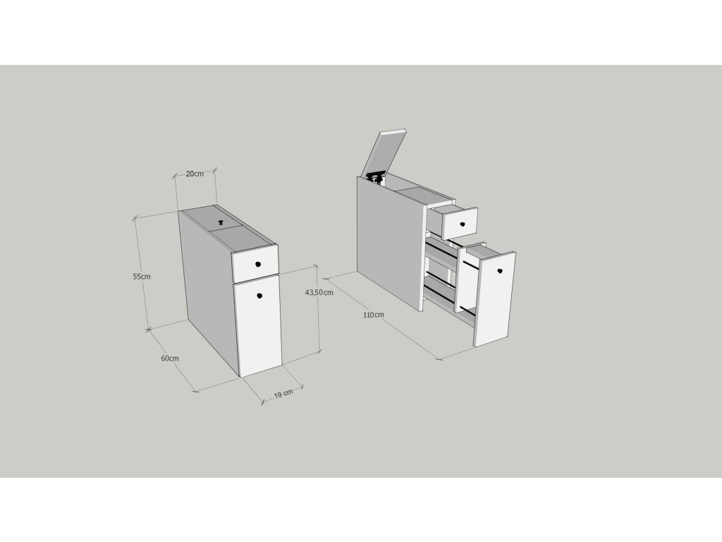 NEKLAN nabízí chytré a efektivní řešení pro menší koupelny. Jeho úzký design umožňuje maximální využití prostoru bez kompromisů na úložnou kapacitu. 1 dvířko a 2 zásuvky poskytují diskrétní úložné prostory pro ručníky, kosmetiku a další nezbytnosti, zatímco 2 police slouží k pohodlnému uskladnění každodenních potřeb.