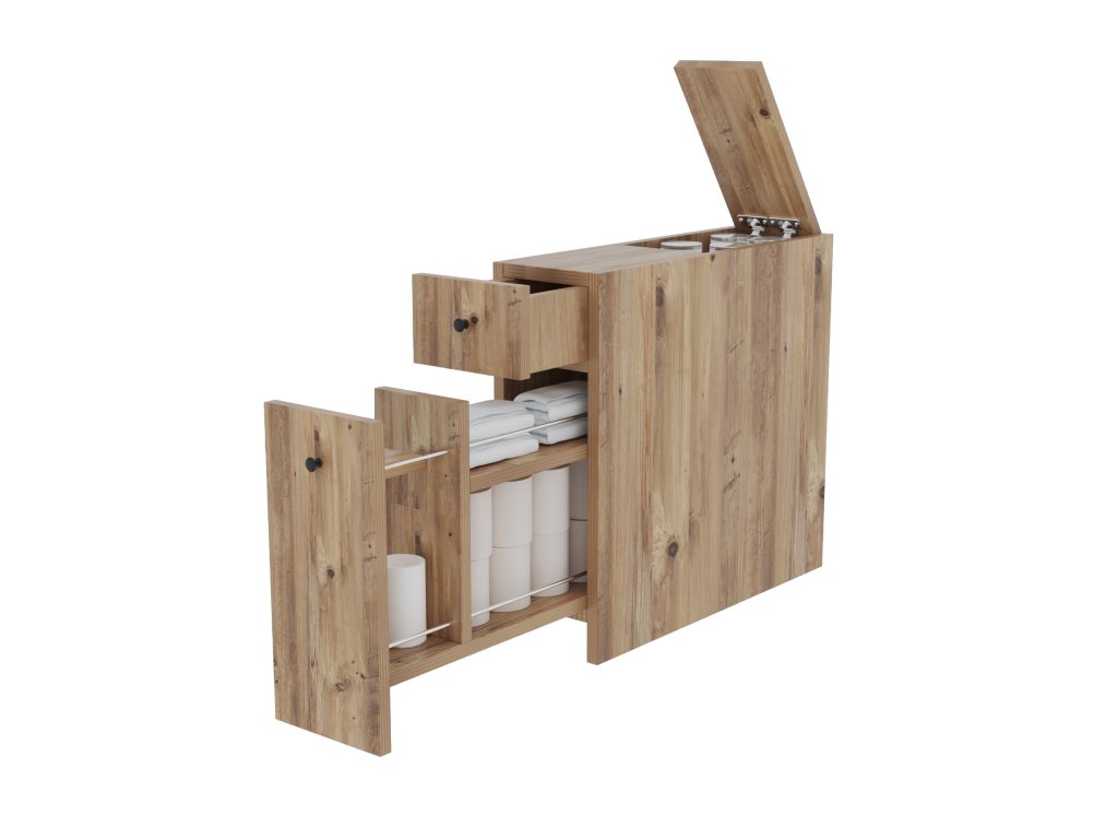 NEKLAN je praktická a elegantní koupelnová skříňka, navržená tak, aby šetřila místo a zároveň poskytovala dostatek úložného prostoru. Díky svému stylovému dubovému dekoru přinese do vaší koupelny přírodní a moderní vzhled, který se hodí do každého interiéru.
