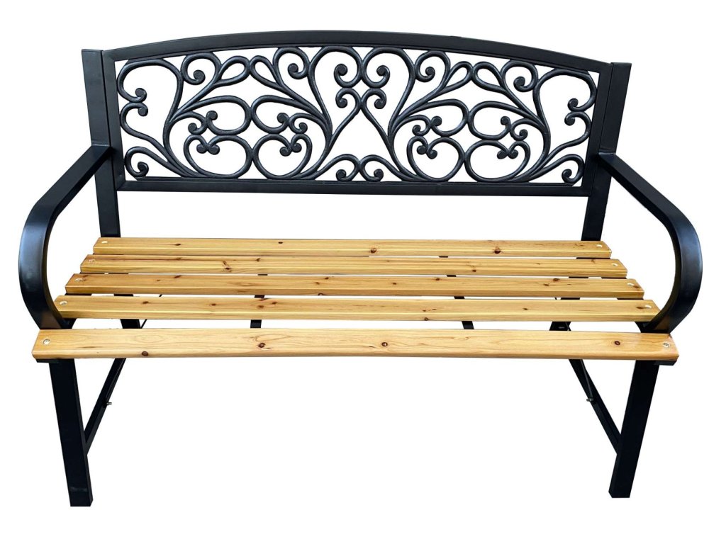 NERO zahradní lavička, černý kov / přírodní dřevo