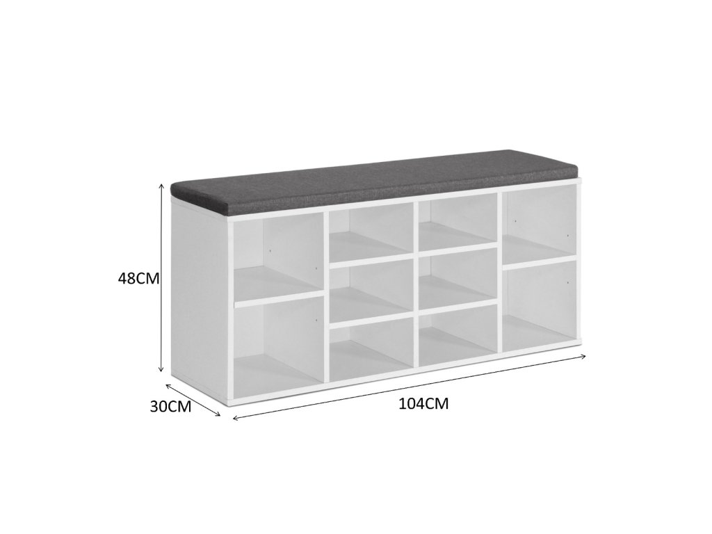 Otevřený botník NICO s šedým podsedákem je praktickým prvkem každé předsíně. Otevřené police poskytují prostor pro 10 párů bot. Středovou část se šesti poličkami nelze výškově nastavit.