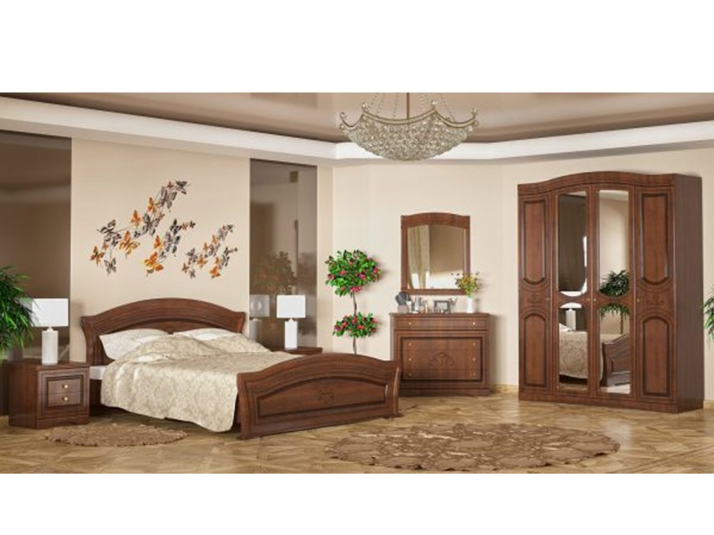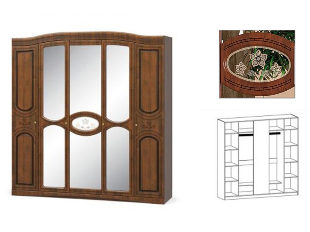 Nábytek ložnice je vyroben z velmi kvalitního MDF materiálu, který se snadno udržuje. Zaujme vás ozdobnými ornamenty a zlatými úchyty na dvířkách. Skříň má vestavěné zrcadlo.