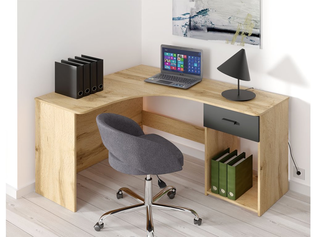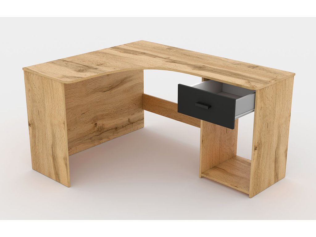 Rohový psací stolek NOOK vynikne v každém moderním interiéru. V nabídce je v žádaném barevném provedení: dub Wotan/černý mat.