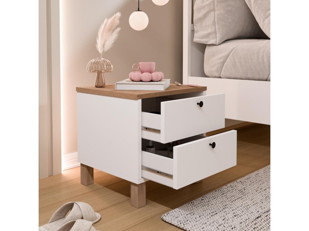 Noční stolek SMART je moderní a praktický doplněk do ložnice, který zaujme kombinací dekoru sepet a bílá. Čisté linie a skandinávský design přinášejí do interiéru svěžest, jednoduchost a nadčasový vzhled.