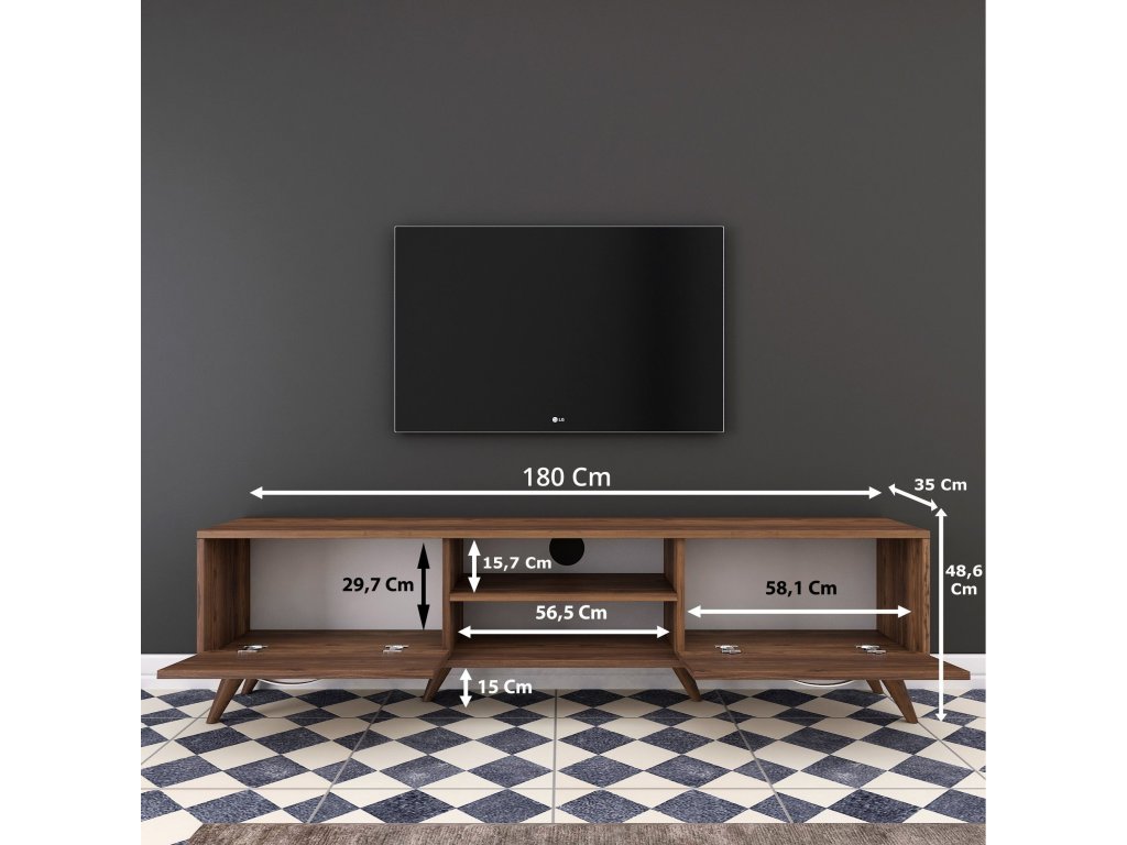 TV stolek NORD je stylový a praktický kus nábytku, který přinese do vašeho obývacího pokoje eleganci a funkčnost. Díky svému provedení v dekoru ořechu snadno zapadne do moderních i klasických interiérů.