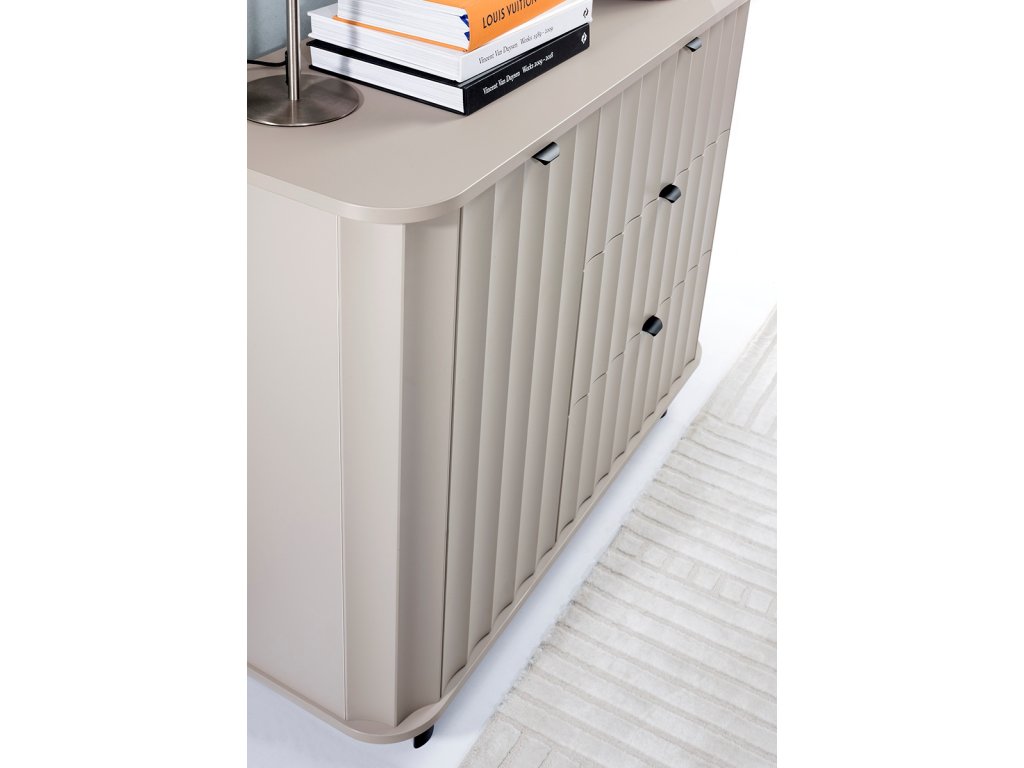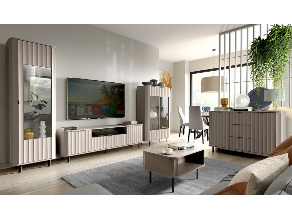 Kolekce nábytku do obývacího pokoje, která spojuje eleganci a funkčnost. Jejím charakteristickým prvkem jsou frézované, fóliované čelní desky z MDF, které dodávají interiéru jedinečný charakter. Díky netradiční barvě se hodí do různých stylů zařízení, od moderních po minimalistické.
