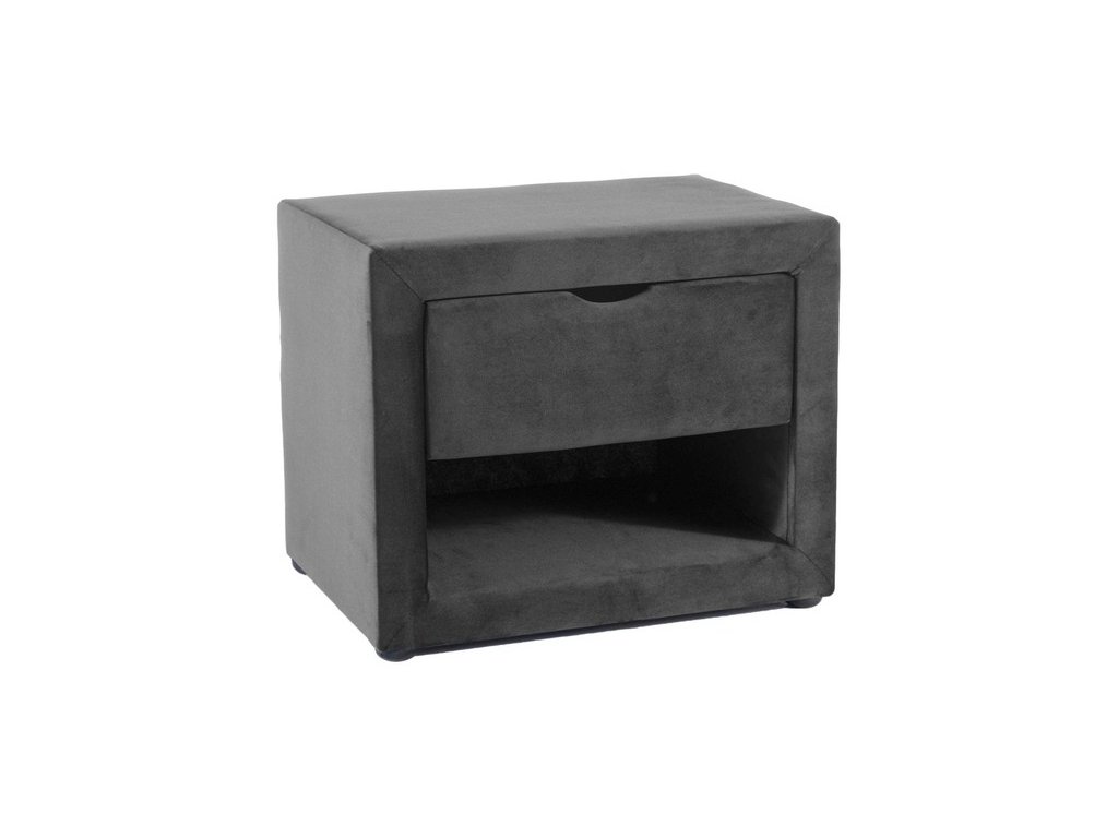 Noční stolek NS-001 patří mezi moderní a elegantní čalouněné stolky. Má 1 zásuvku a jeden otevřený úložný prostor pro odložení časopisů, knih a podobně.