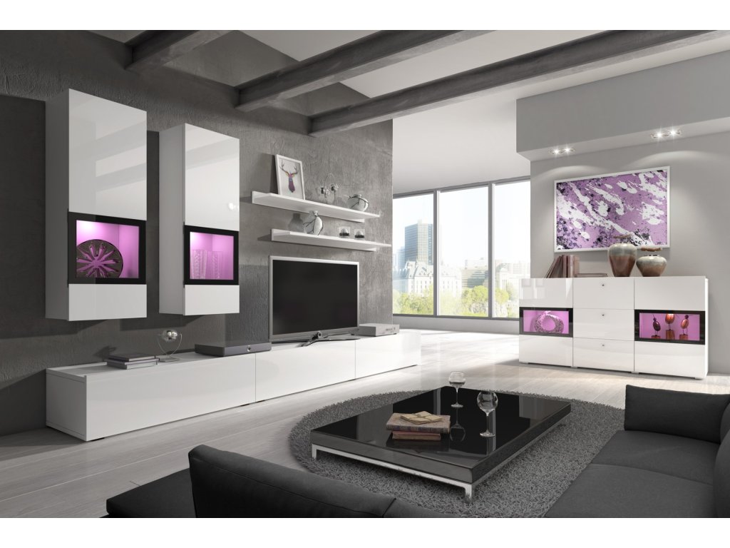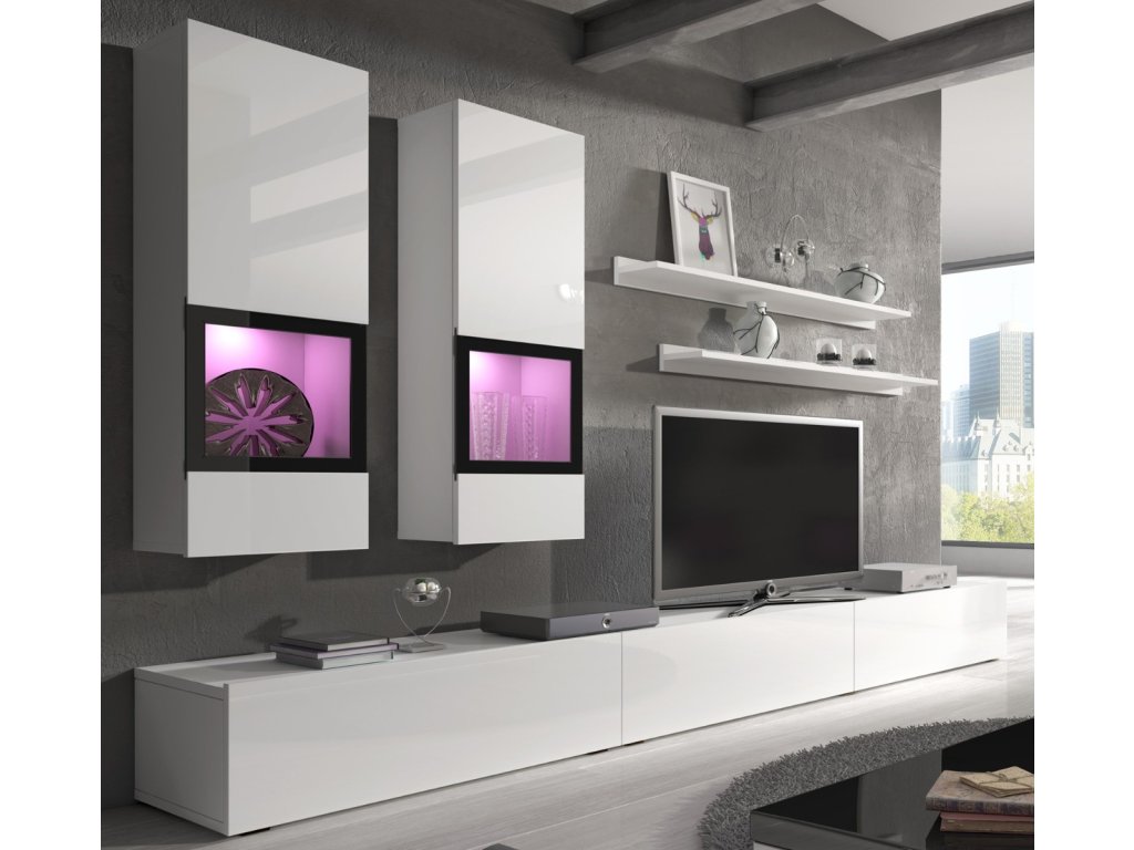 Obývací stěna Barly 10 bílá + bílý lesk