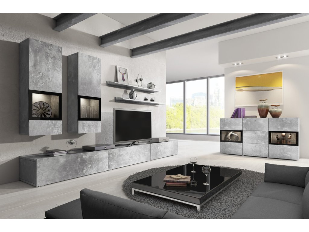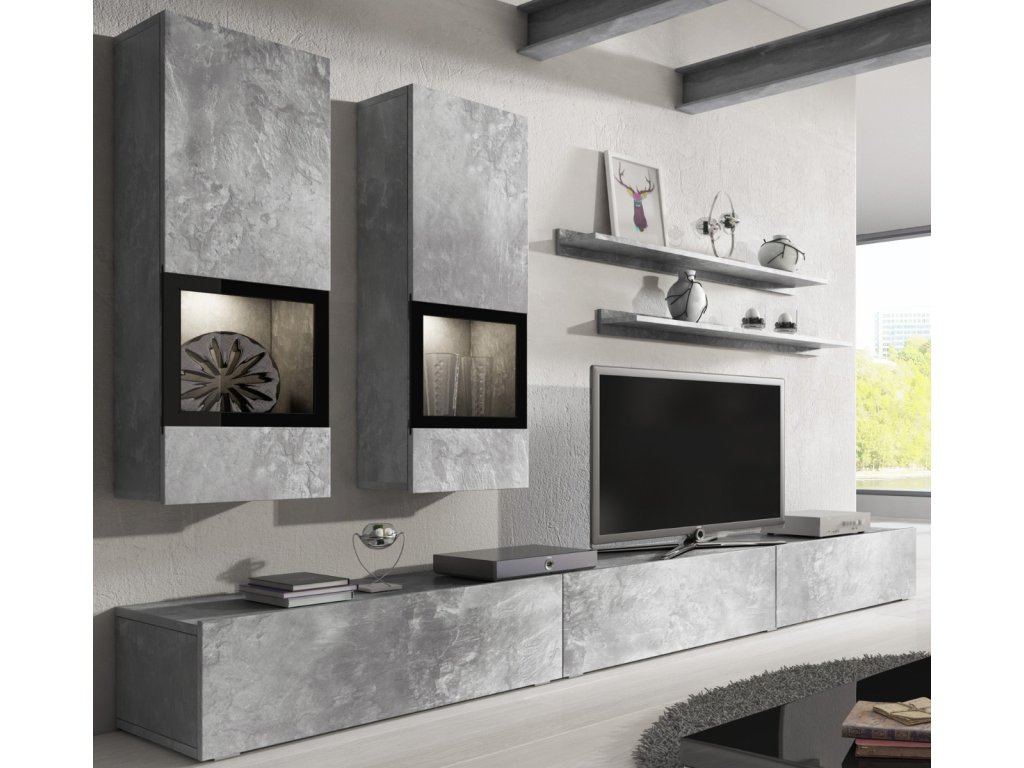 Nabízíme jej v originálním barevném provedení světlý beton. Sestava BARLY sestává ze dvou závěsných skříněk s prosklenými dvířky, dvou závěsných polic, a tří nízkých komod. Ty Vám zároveň poslouží také jako TV stolek. Závěsné skříňky mají na dvířkách kolem skleněné výplně dekorativní rámy černé barvy, což dodává sestavě na stylovosti. Dvířka na závěsných skříňkách a komody jsou vybavena bezúchytovým systémem.