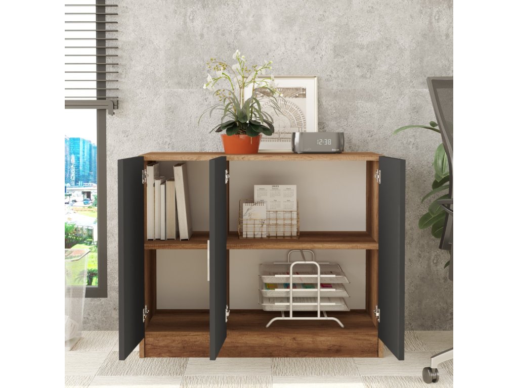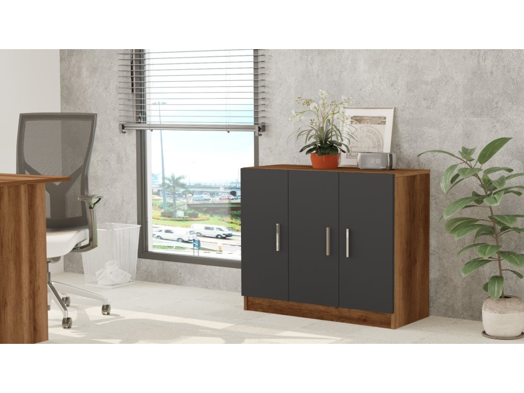 VARIO 5 komoda je dokonalým spojencem v jakékoli kanceláři nebo pracovně. S její elegantní barvou v odstínech baroko a antracitu přináší do vašeho interiéru nádech luxusu a sofistikovanosti. Tento nábytek z materiálu LTD nejen že zaujme svým vzhledem, ale také poskytuje praktická úložná řešení s dvířky plnými.