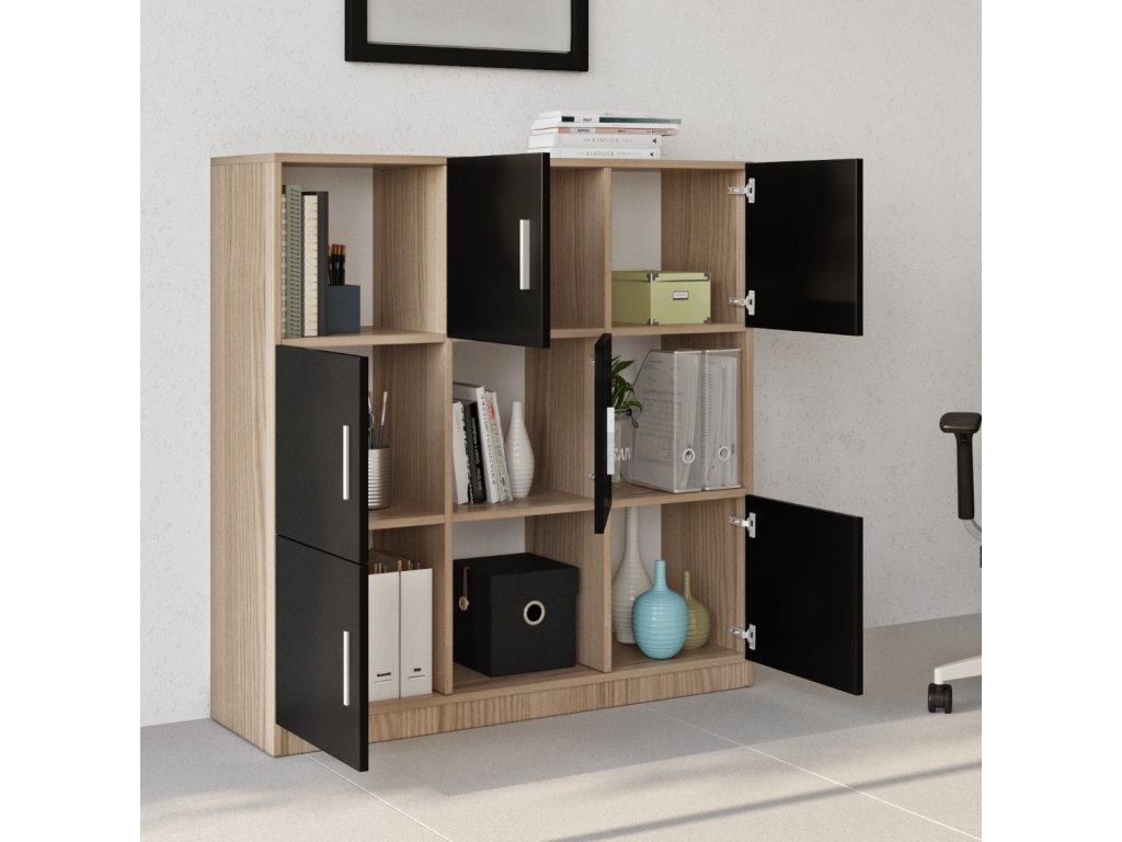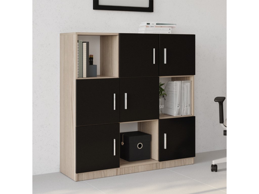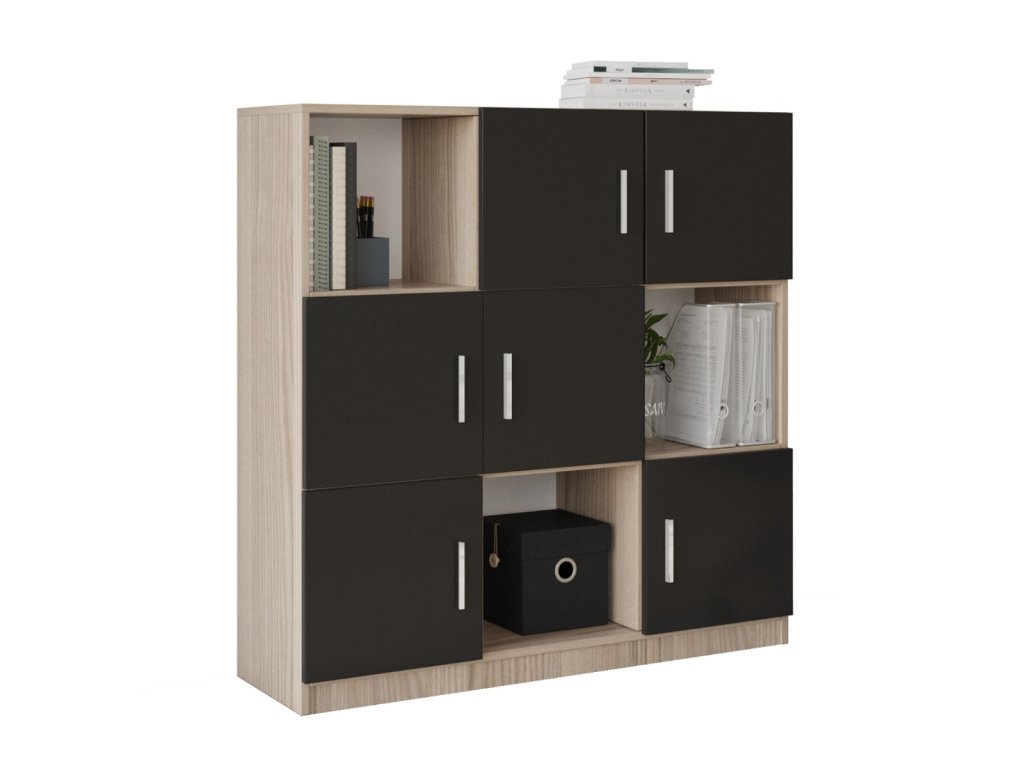 Stylový design: VARIO 7 je komoda a skříňka zhotovená z kvalitního materiálu LTD, který kombinuje přírodní dub a moderní černou barvu. Tato kombinace dodává VARIO 7 sofistikovaný a elegantní vzhled, který se hodí do jakéhokoli pracovního prostředí.