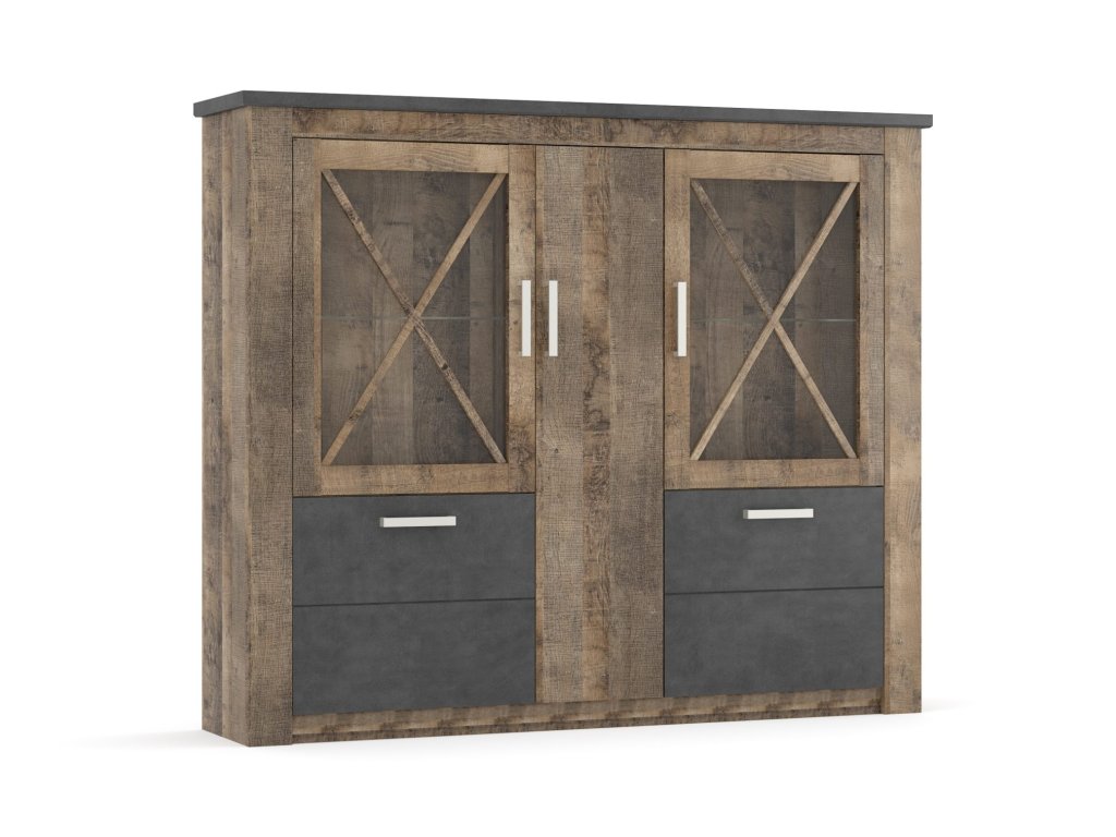 OLEXIE třídveřová komoda s vitrínou, dub kolonial-matera