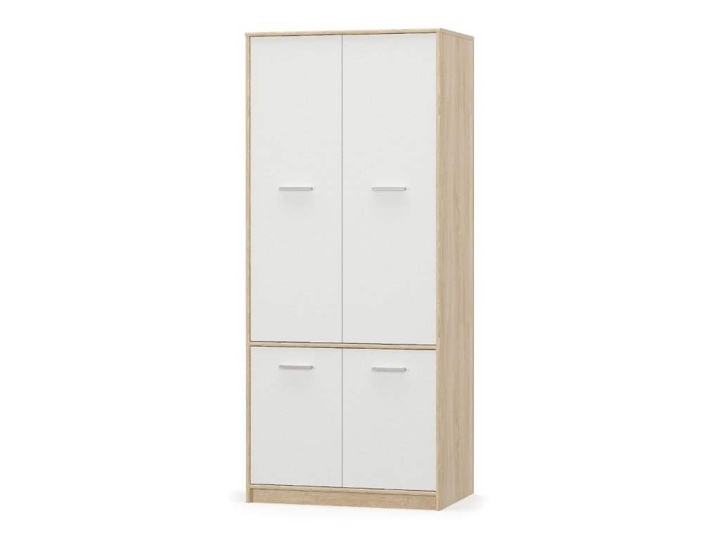Šatní skříň OLINO je výbornou volbou pro Vaši ložnici či dětský pokoj. Vyrobena je z kvalitní LTD desky v barevném provedení dub Sonoma/bílá matná, které se hodí do jakéhokoli interiéru.