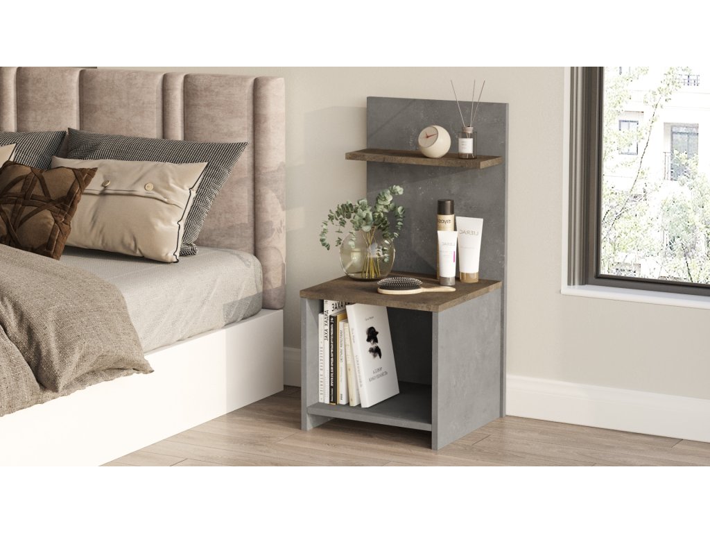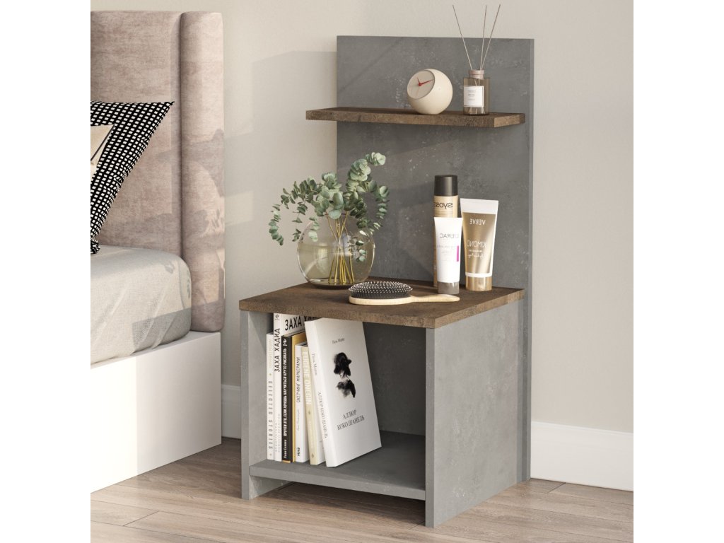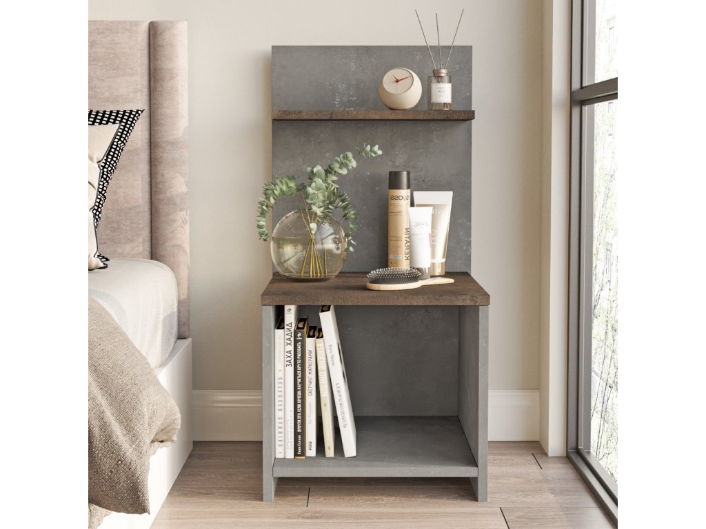 Otevřený noční stolek PLUS 1, beton/bronz