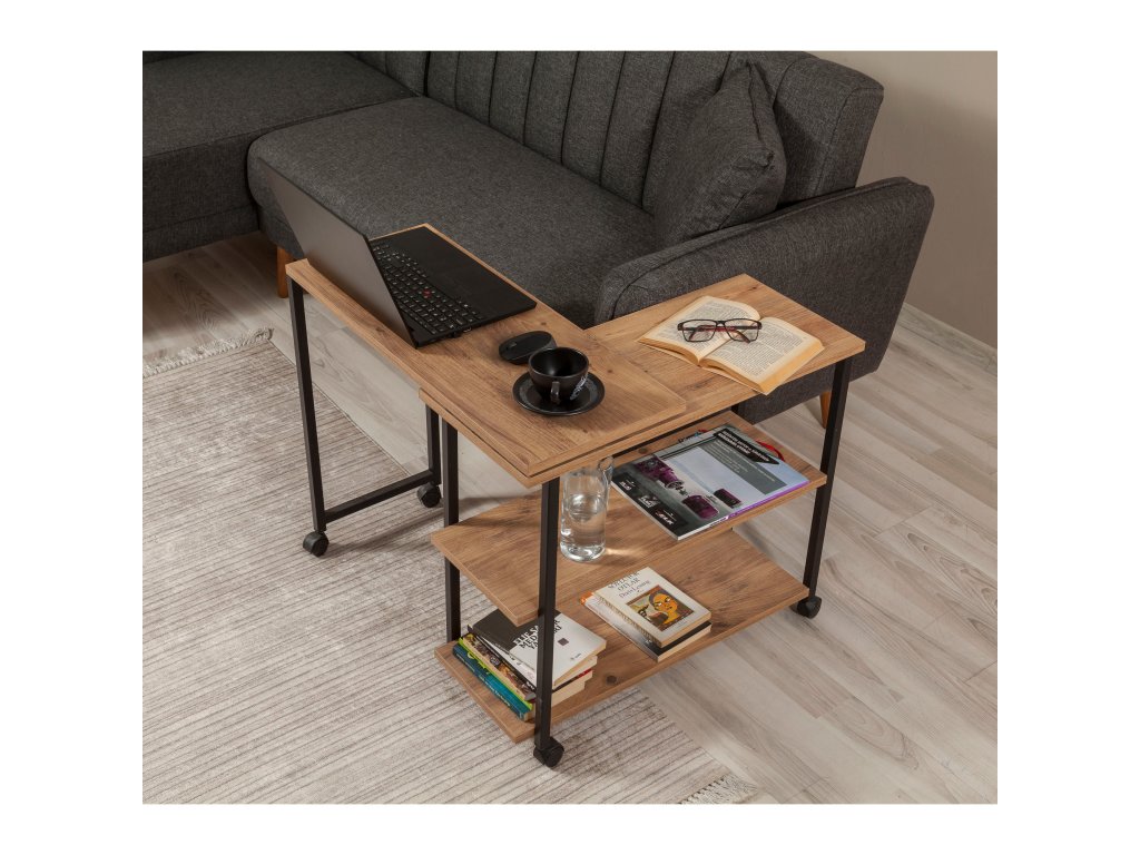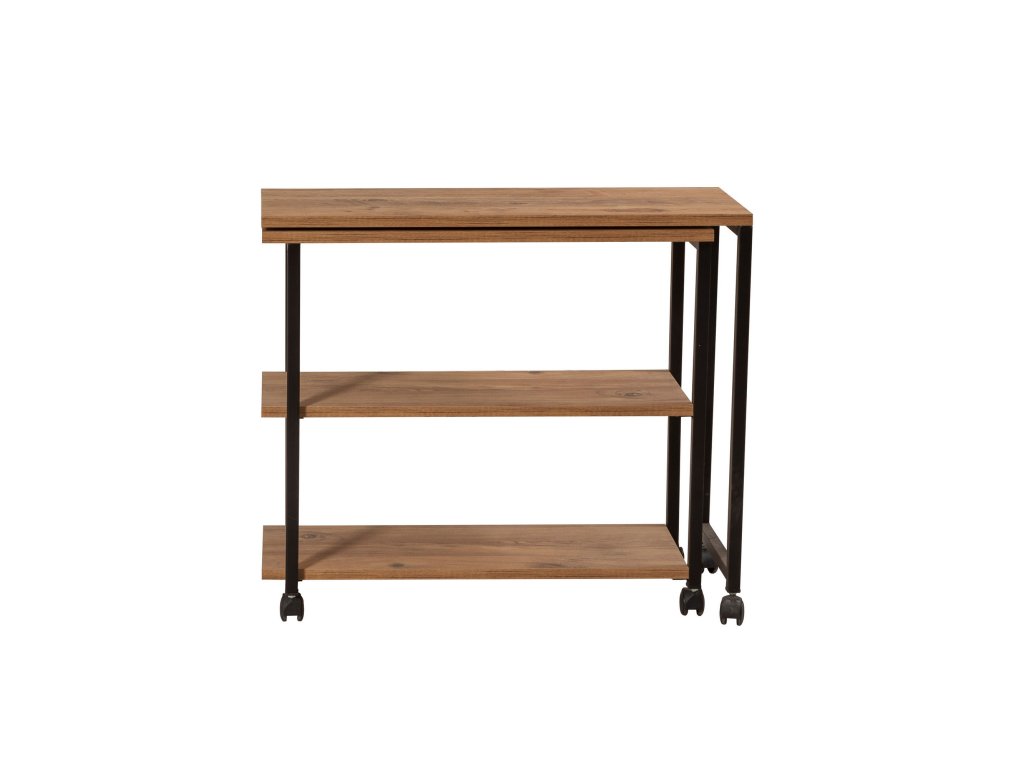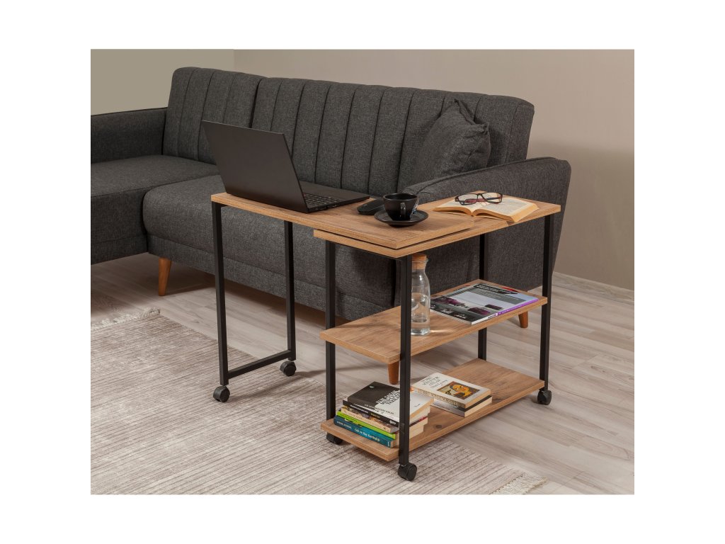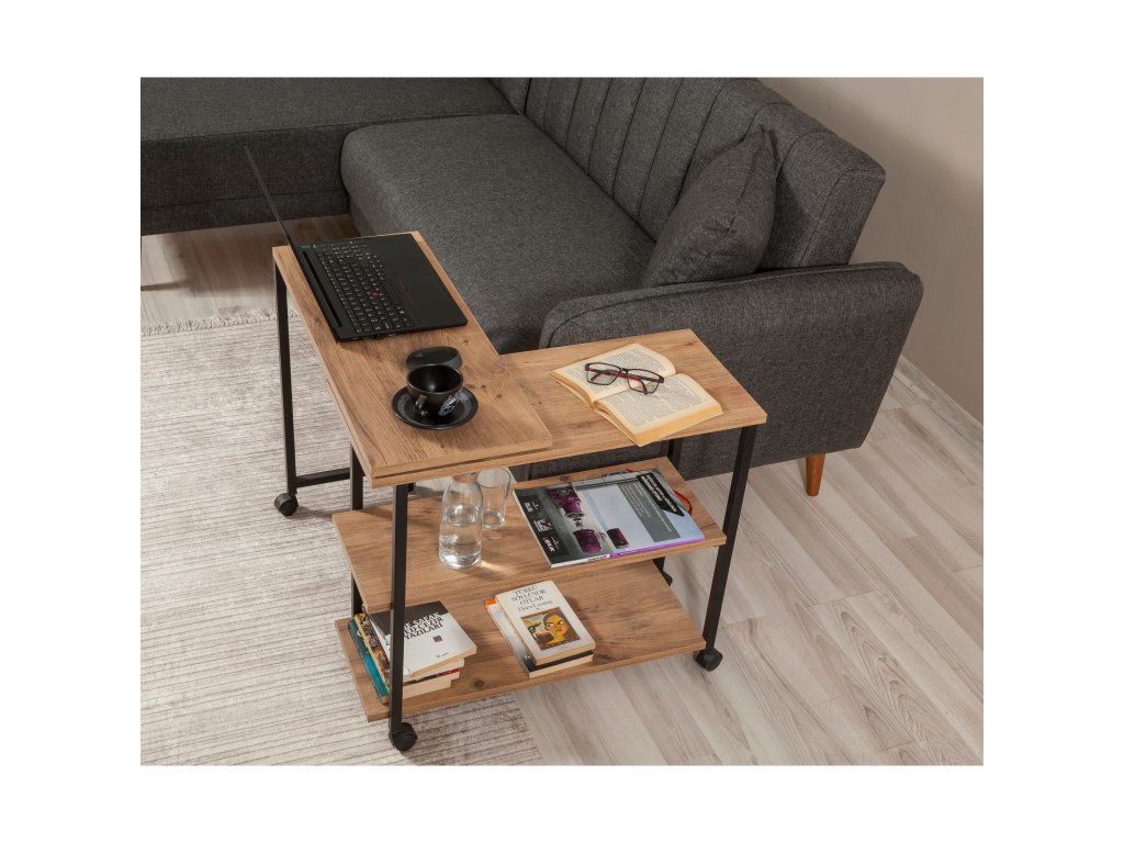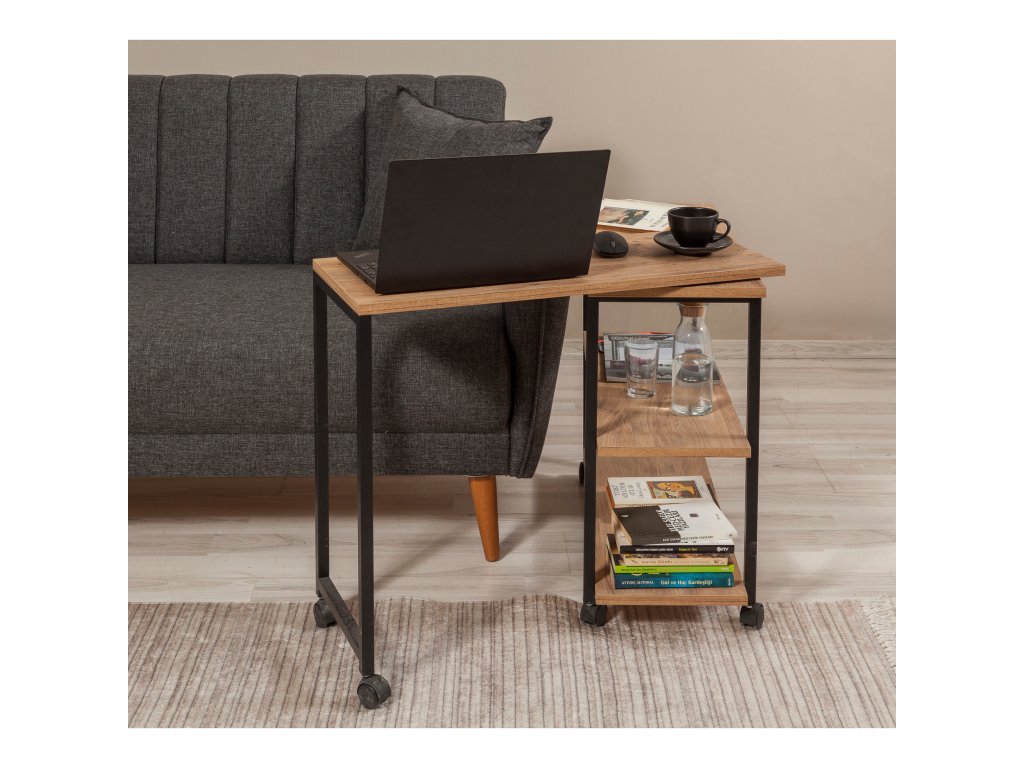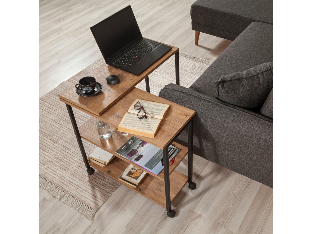 Ať už potřebujete noční stolek, konferenční stolek nebo praktické úložné řešení do obývacího pokoje, tento všestranný odkládací stolek vám pomůže. Jeho kompaktní rozměry a kolečkové nohy usnadňují přemisťování a umožňují vám bez námahy proměnit jakýkoli prostor podle vašich potřeb. Barevná kombinace atlantské borovice a černé dodá každému interiéru nádech sofistikovanosti.