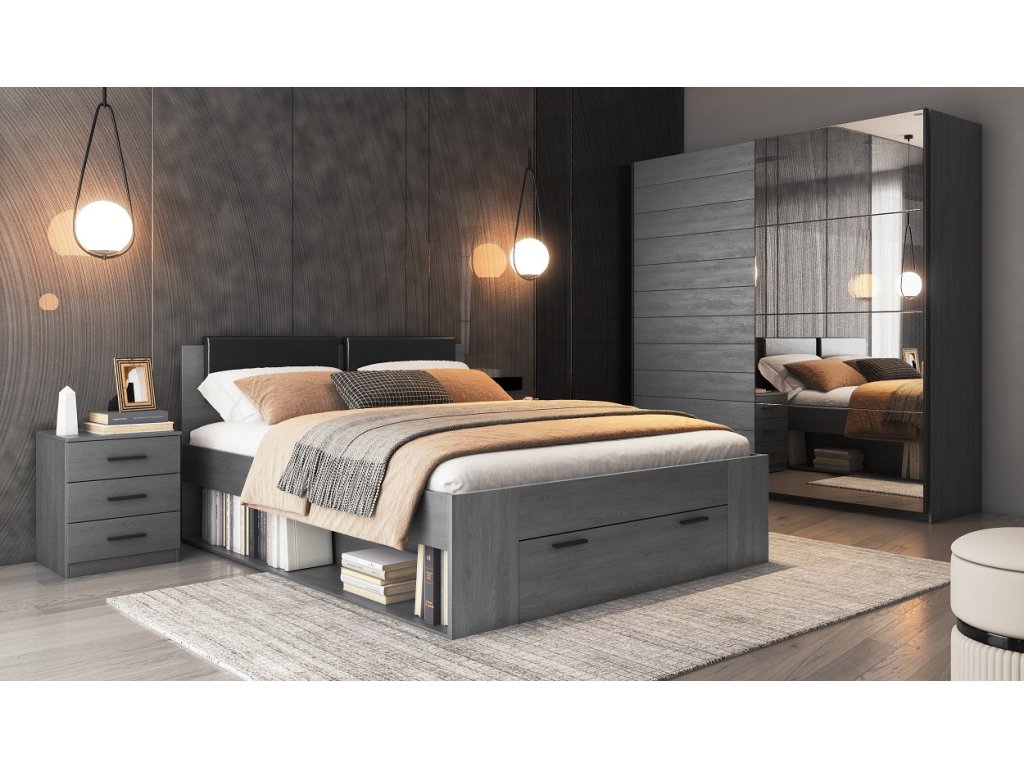 Sestava PALINDA je v elegantním a nadčasovém provedení. Tmavé odstíny nábytku vytvářejí harmonii domova. Pro lidi, kteří mají rádi spojení elegance a funkčnosti je ložnicová sestava PALINDA vynikajícím řešením.