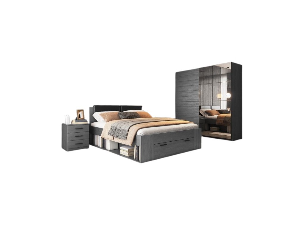 | Sestava obsahuje: | Manželská postel 160: 166 x 101 x 205, 2 x noční stolky: 47 x 56 x 42, šatní skříň: 200 x 210 x 61 cm. |